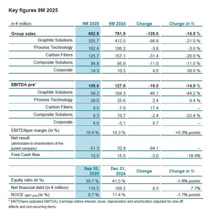 SGL Carbon 2025年前九個月的關(guān)鍵數(shù)據(jù)