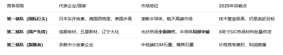 中端細(xì)分(光伏熱場):毛利率在20%-30%,隨著國產(chǎn)化率提升,價格逐年溫和下降,規(guī)模效應(yīng)和良率成為競爭核心。